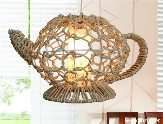 其實,生活中無處不存在著創(chuàng)意,只要你大膽的想象,充分發(fā)揮你的才能,就一定會發(fā)現(xiàn)生活中,你的身邊就會有很多新奇的東西。看這款燈具,是不是很像一個茶壺?沒錯,這就是我們經(jīng)常使用的茶壺,也許在生活中你不會覺得這樣一個茶壺設(shè)計非常精巧,但在燈具上,采用了手工編制的茶壺形外罩,藤草色非常富有大自然的氣息,吊線可以調(diào)節(jié)長短,非常實用。