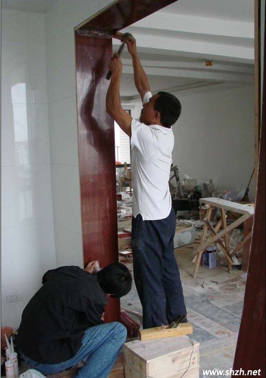 1、過門石、大理石窗臺的安裝。過門石的安裝可以和鋪地磚一起完成,也可以在鋪地磚之后,大理石窗臺的安裝一般在窗套做好之后,安裝大理石的工人會準備玻璃膠,順手就把大理石和窗套用玻璃膠封住了。