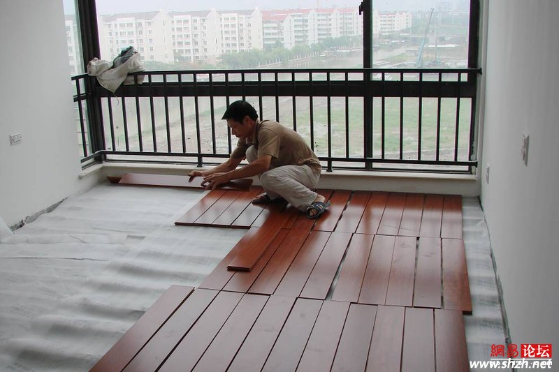 3、 地板安裝時,有條件的話,地板的切割一定要在走廊。以前論壇還就這個問題討論過,有同學認為在走廊切割地板污染公共區(qū)域,不道德。我的想法是完工之后打掃 一下,不打緊。在室內(nèi)切割地板對墻面的污染比較嚴重,類似的還有櫥柜的人造石臺面的切割,我相信裝修過的同學多少都有體會。