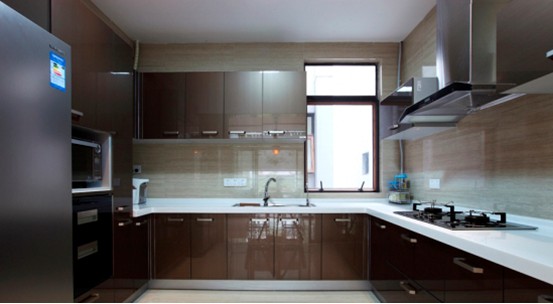 由于本案是二層的疊墅,負一層還有一個比較大的空間,設計成一個大開放式書房,另加一個客房,還有工人房兼儲物間。另外,一樓過道通過墻體的改動拓寬了,使空間拓寬;