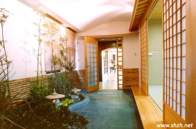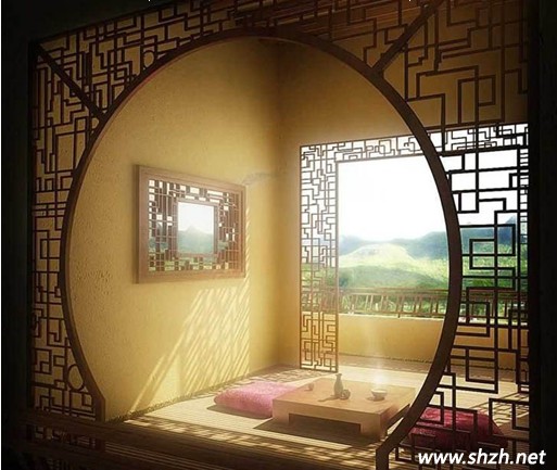日式禪風家居的門扉主要以格柵式的柜體設計為主,這樣能為整個空間帶來間接光源的同時產(chǎn)生明暗的層次感。客廳與餐廳、廚房之間,可以利用特殊玻璃作為框架的推拉門扉來分隔區(qū)域,而這種特殊玻璃要與廚房主墻面上的餐具柜用相同的才質(zhì),這樣在門扉開闔之間會產(chǎn)生不同的空間樂趣??蛷d與茶道間之間可以利用圓形的透明隔屏,搭配古典的茶具作為視覺焦點,視線可以通過客廳直接落在日式景觀露臺里。