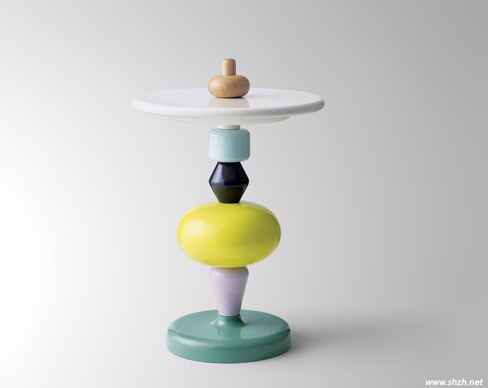 03.Shuffle Table的邊幾,出自年輕的丹麥女性設(shè)計師Mia Hamborg之手,以豐富的色彩及富趣味的造型為北歐傳統(tǒng)木制家具帶入新生命,每個組件都可自行組裝變化出不同造型、顏色與高度組合。