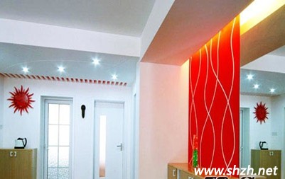 用火紅的彩繪玻璃玄關設置,隔開了客廳,讓剛進家門的人感覺進入暖洋洋的世界。加上房屋的邊線使用紅條間隔,配上鮮紅的太陽圖形掛飾。就算心情煩悶的人看到這也將煩惱拋之腦后了吧,只剩下熱情熱戀般的浪漫。