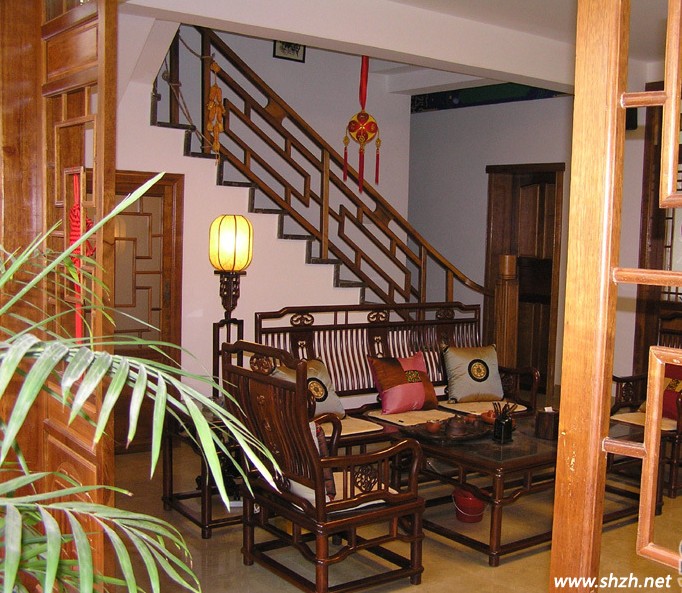 簡單舒適是現在復古風的一向趨向,告別華麗的擺設和裝修,只有中國味十足的桌椅,樓梯和隔斷,好像在鏤空的世界里面,充滿紫檀木的復古味道。乳白的墻壁上在昏暗的光線下很有味道。淳樸的家具顏色讓一切看起來都特別舒服,沒有一點壓力。