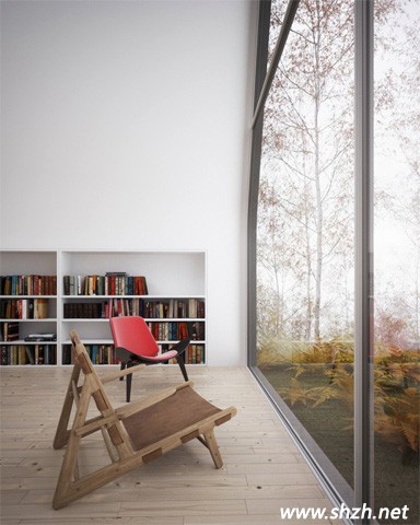 在閱讀區(qū)裝修在玻璃墻旁邊,又靠近花園,不僅采光好,還接近綠色植物,有助于主人閱讀之余遠眺,視野開闊。