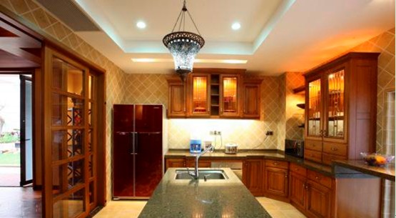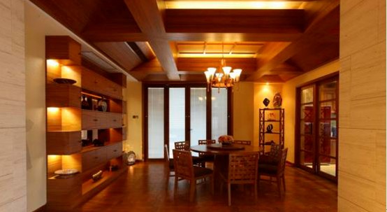 玄關設置實木屏風與簡樸的石材相結(jié)合,不僅符合中國傳統(tǒng)玄學理念,又豐富了空間的層次??蛷d地面戶外木地板延伸至花園的水池、飯廳的門均采用折疊式鋁包實木門、視野、采光十分開闊,使室內(nèi)空間更好地與室外水池、園林相呼應。東南亞獨特、優(yōu)美的藝術擺設,更加襯托了主人的愛好和品位。滿足業(yè)主提出的舒適、休閑的要求。