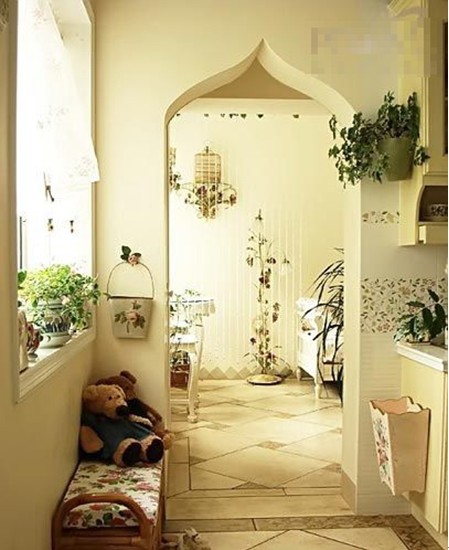 用花來裝飾落地燈溫馨浪漫,可愛又獨特的踢腳線把濃濃的田園風發(fā)揮到極致。
