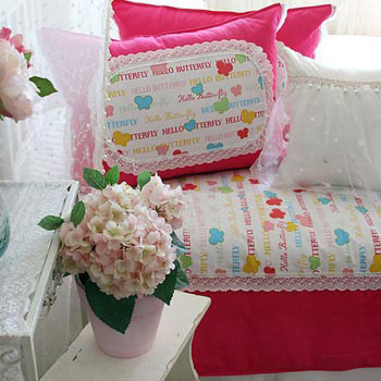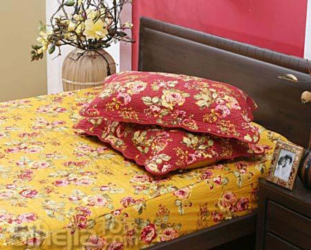 黃色為底床罩+紅色花朵靠枕 一幅田園氣息在臥室洋溢。以一種恬淡陶然的田園情懷再現(xiàn)精致浪漫的都市品質(zhì)生活:聞著空氣中彌漫著愛的氣息,那一份溫馨,那一份感動,盡在這一瞬間??臻g,因為得到釋放而精彩紛呈。