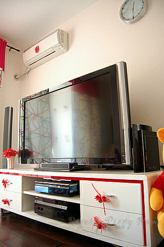 裝修主要體現(xiàn),實用與溫馨。結(jié)合結(jié)婚的主題,所以房間的基調(diào)定為紅白色基調(diào)。簡潔而溫馨,圖片我們從客廳開始: