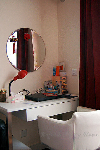 每個有女子的屋子里都少不梳妝臺,顯然這個家的女主人可能還兼具女強人的本質(zhì),這么女性化的位置還擺放著電腦。