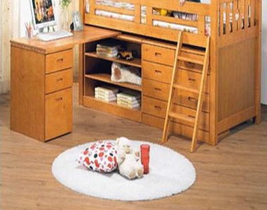 有的家長會擔(dān)心雙層床會對孩子的安全因素帶來隱患。但是一般而言,如果孩子較小,沒有安置學(xué)習(xí)空間的必要的話,家長可以選擇“矮”一些的兒童雙層床。而且這一類的床通常以實(shí)木為主,造型多樣,穩(wěn)定性強(qiáng),護(hù)欄設(shè)置得較高也較周全。