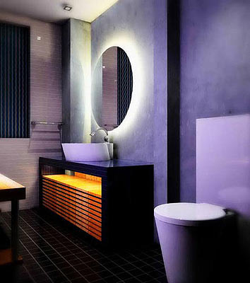 富有靈性的紫色是女人們最鐘愛的色彩,若隱若現(xiàn)的紗簾隱約而不可捉摸,兩者結(jié)合構(gòu)成了家中最迷離的一道風(fēng)景。夏天試著在浴室干濕過渡區(qū)域配上輕盈淡紫色紗幔,既分割區(qū)域又讓浴室的空氣通透舒適。