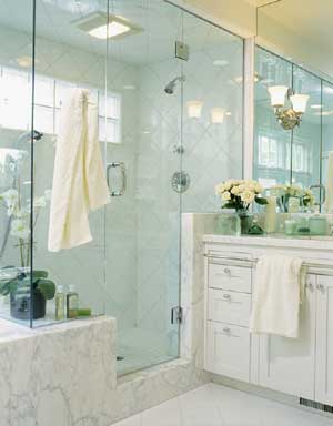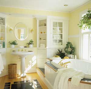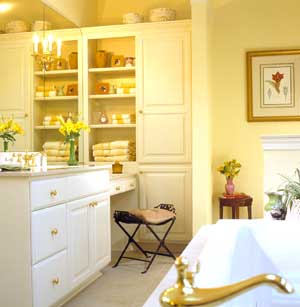 主浴室的櫥柜選擇相當(dāng)重要。如圖所示L形的組柜最大限度的利用了主浴室里的角落空間。同時,整個浴室空間更顯氣派、敞亮。L形組柜的右側(cè)部分還提供了非常好的展示空間。