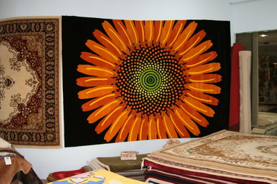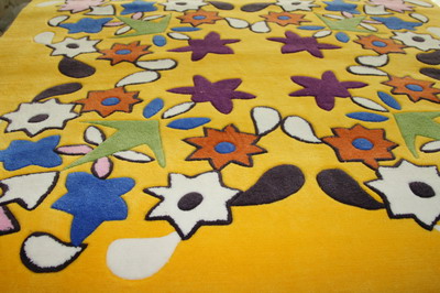 各種花朵圖案的地毯也是今年的熱點。像這塊大大的向日葵圖案的地毯,可以鋪也可以做掛毯。