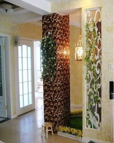 位于客廳過道中的小小花園,開門就能看到,原來是一根大柱子,開門就能看到它傻愣愣的站在那,很不爽,把周圍改裝了一下,搞成一個(gè)小花園,中間掛了只鐵藝類似鳥籠燈~ 燈和花花草草也是網(wǎng)上淘來的