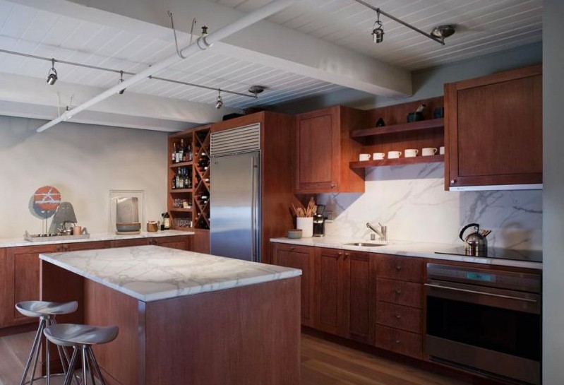 走進(jìn)這個廚房,會不會被這個略帶紅色調(diào)的木色把廚房裝點得驚艷呢?簡約是絕對的,看著也分外清新。