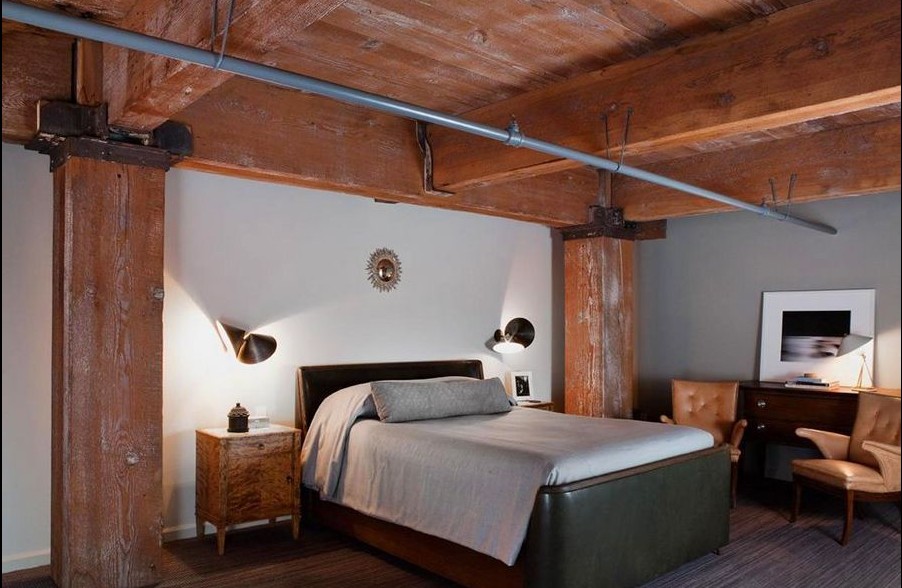 最后再到臥室吧,臥室背景墻非常簡單,但卻是點睛之筆。木色用得非常徹底。