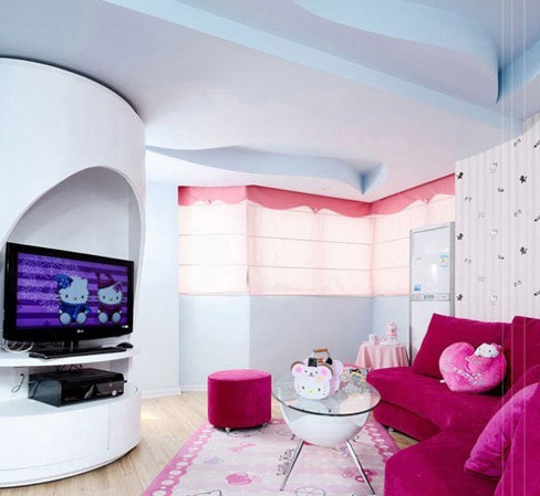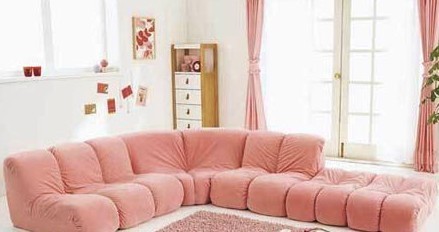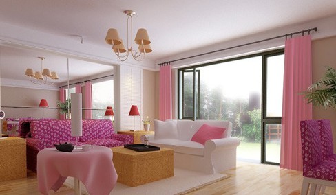 圓弧形客廳設(shè)計(jì),搶眼的粉色沙發(fā),坐在沙發(fā)看看電視,簡(jiǎn)單的浪漫生活。甜蜜的淺粉色碰上誘惑的艷粉色,配搭上白色的墻面,呈現(xiàn)出純真可愛(ài)的家居風(fēng)格。
