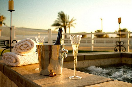 可以與酒店溝通,送你們兩杯上好的香檳酒,也可以將私藏的珍品在那天開啟。不妨用一些絲帶或鮮花裝飾酒杯,更唯美夢幻?!?nbsp;