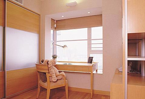 書桌依窗而里,抬頭既可看見窗外美景.