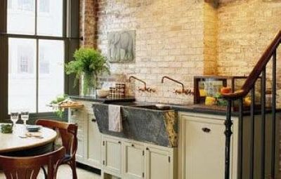 地材與墻材突出原始:鄉(xiāng)村風(fēng)格還有它獨(dú)特的標(biāo)志,如暴露在外的房梁、松木嵌板以及裸露的磚塊,都是鄉(xiāng)村風(fēng)格的金字招牌。如果你想打造一個(gè)純粹的鄉(xiāng)村廚房,那就接受這樣一個(gè)挑戰(zhàn):直接使用磚石鋪地、用原木而不是木板做墻面或吊頂(難度在于材料很難找到),只要決心已定,力氣足夠大,就能建造一個(gè)十分美麗的廚房。