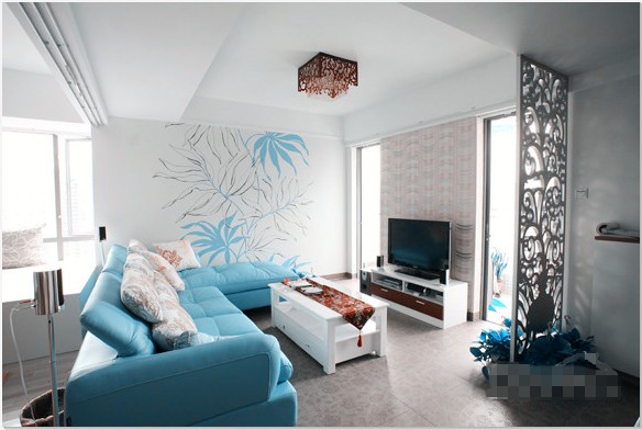 整個(gè)客廳的采光很好,讓人的心情也隨之陽(yáng)光起來(lái)。色彩的運(yùn)用使客廳和過(guò)道渾然天成。簡(jiǎn)單的布置,沙發(fā),茶幾,電視滿足了最基本的閑暇娛樂(lè)時(shí)光。電視柜上的布簾,隨意擺放的靠墊,都選擇了大花型圖案,頓時(shí)打破了空間的單一感。