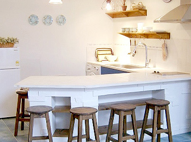 此外,吧臺或上下吊柜也都具有收納功能,一般吧臺可兼做早餐臺,高度以85公分最佳,用一般座椅即可,此吧臺還可當(dāng)工作臺使用;超過100公分的吧臺,就需要使用高腳凳,不過,收納功能相對較強;吊柜也可做成有門片的雙面式或?qū)影迨?,可收納雜物,層板可放餐杯或咖啡杯、酒杯等裝飾性的餐具。