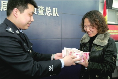 偵查員從3名嫌疑人處追回了17萬余元贓款,昨天下午,發(fā)還給了賈小姐。