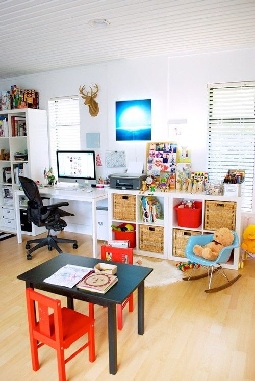 爸爸的電腦桌與小寶貝的玩??臻g在一起,更能增進(jìn)爸爸與寶貝的感情。