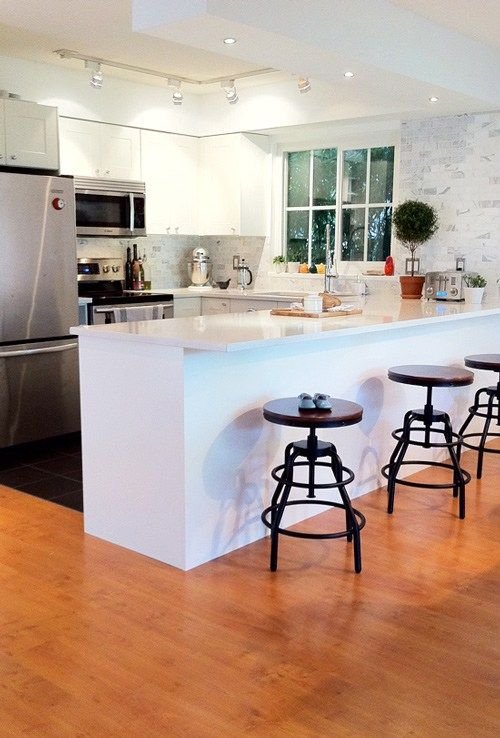 簡(jiǎn)潔干凈的廚房,潔亮的吧臺(tái)