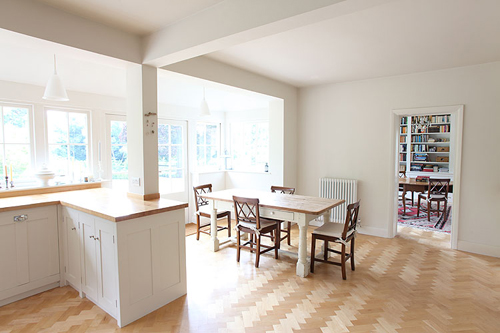 可以看出餐廳是開放式的,正好夾雜廚房和閱覽室的中間。