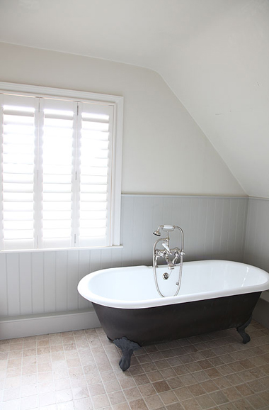 最后是衛(wèi)浴間,黑白色的浴缸坐落在角落,邊上是大型的窗戶。