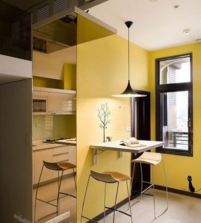 開(kāi)放型的小廚房,整體的色調(diào)與造型都以現(xiàn)代簡(jiǎn)約風(fēng)格為主,流暢的直線設(shè)計(jì)。白色的兩人小餐桌色調(diào)純凈,與暖黃色背景墻對(duì)比非常和諧,色彩搭配分外出彩,讓人一下子有了親近自然的舒適感。