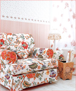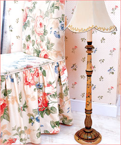 如果想讓家具有這種優(yōu)雅的花朵感覺,可以買些看起來很有味道的布,做成外套,給家具穿上,像這樣,椅子披上大花的裙裝,配上秀氣的臺燈,就可擁有一處迷人的角落。