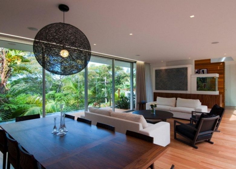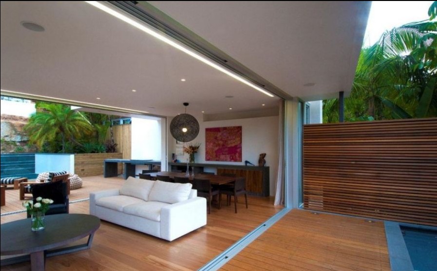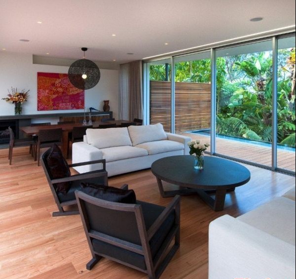 小客廳里巨大的玻璃推拉門(mén)讓房間與外界沒(méi)有隔閡。