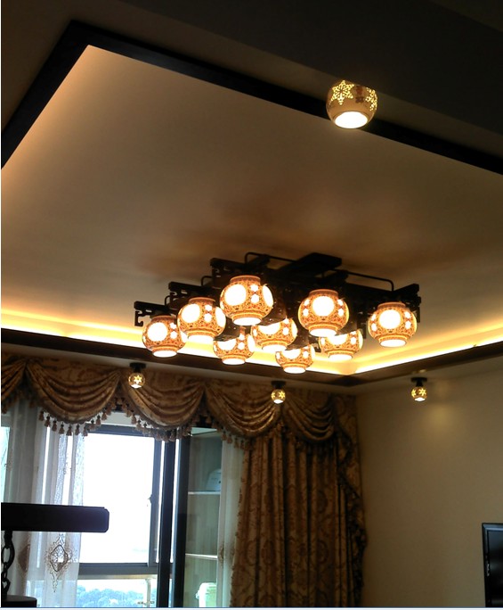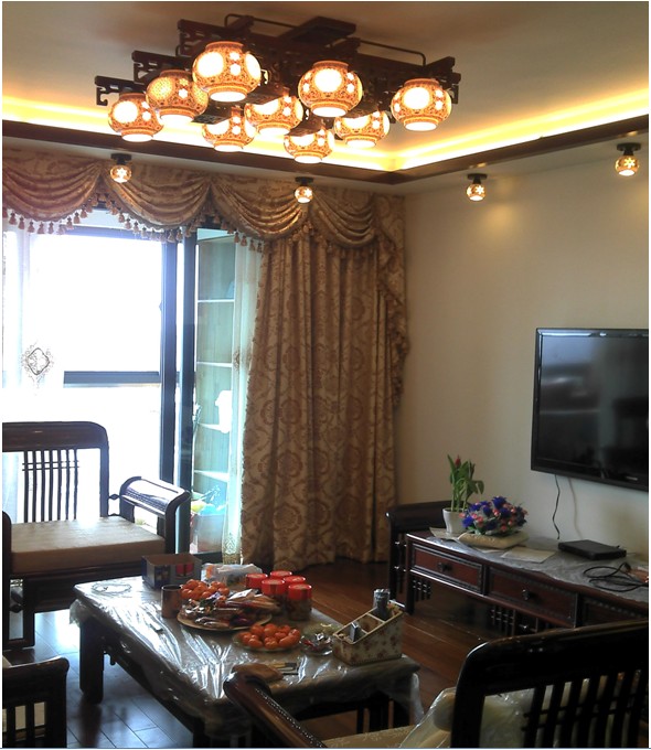 中式的吊燈仿佛是燈籠又仿佛黑夜的星星給人希望給人憧憬,燈籠是中國(guó)的傳統(tǒng)文化這又與中國(guó)古典風(fēng)格相呼應(yīng)!在加上吊頂?shù)哪揪€條收邊,以及裝飾很強(qiáng)的燈籠式的筒燈都在演繹著中國(guó)的傳統(tǒng)文化的高雅,中國(guó)古典風(fēng)格的不顯奢華的情調(diào)!