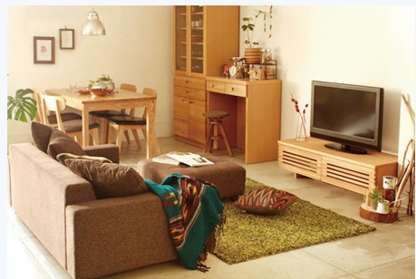 小巧溫馨的客廳,布藝沙發(fā)的色彩加入一絲絲溫馨感??蛷d里的家具物品都小巧為上,原木色更加讓人覺得溫馨。