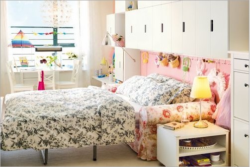 概要: 色調(diào)甜美的粉色系是小朋友們的最愛,兒童房設(shè)計不僅僅要考慮到色彩的搭配,在選擇家具方面也要細心的挑選,此套案例打造出了一個夢幻的兒童樂園,色彩清新淡雅、舒適溫馨。由于空間有限在這間臥室內(nèi)的床和沙發(fā)帶有折疊功能,白天可以把床折疊起來,騰出足夠的活動空間。而造型簡潔別致的家具及有效的利用墻面立體空間,又起到靈活的裝飾作用。流線型設(shè)計的書桌椅,純凈自然。