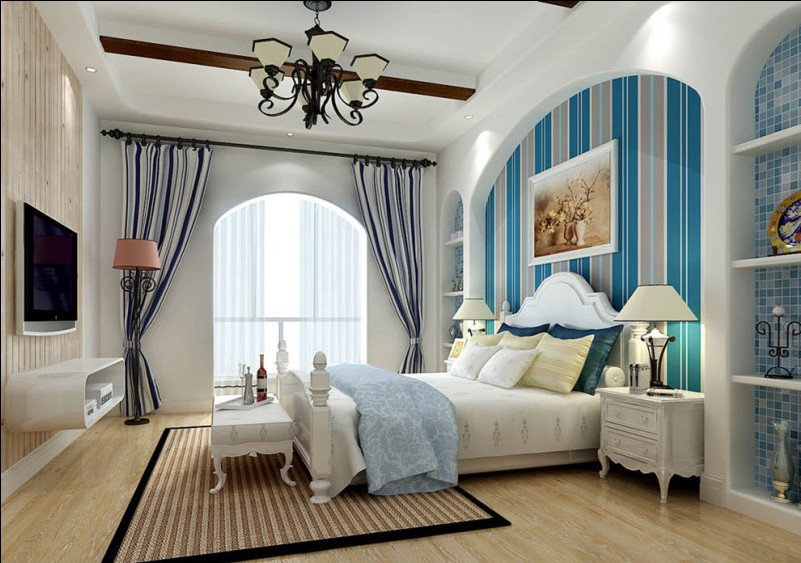 拱形的設(shè)計使地中海的情調(diào)貫穿家居始終,其純美的色彩組合。就像親臨地中海,藍(lán)白的干凈使生活變得簡單而自如。