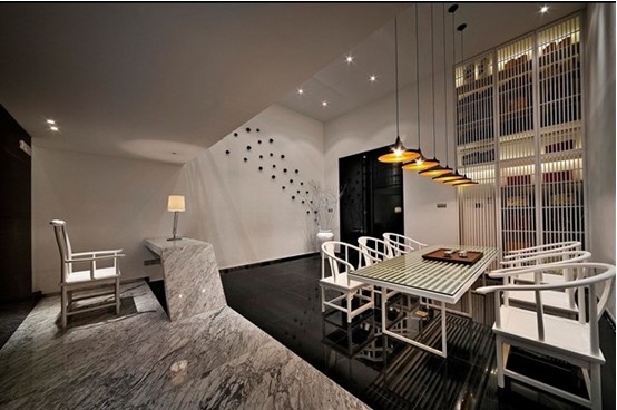 概要:   所謂的新中式,并非拿來(lái)主義式,不是純粹的將傳統(tǒng)中式元素和西方元素相互堆砌在一起就是新中式。而是通過(guò)對(duì)中國(guó)傳統(tǒng)文化的認(rèn)知結(jié)合現(xiàn)代人的生活習(xí)性和審美需求一起打造出清雅含蓄、端莊脫俗具有獨(dú)特東方韻味的事物。  地面石材與書(shū)桌的巧妙相連,從視覺(jué)上連成一體,加強(qiáng)了空間的層次感的同時(shí),在空間感上拉伸的真?zhèn)€空間的距離。
