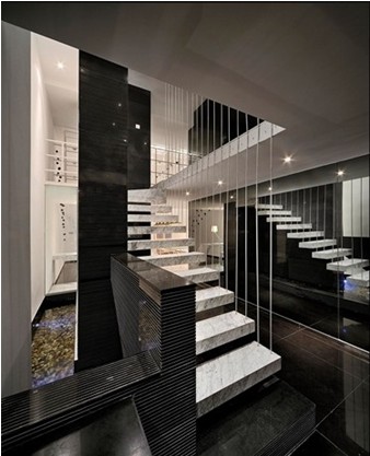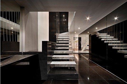 樓梯的構(gòu)思也甚是巧妙,鋼筋的運(yùn)用依然是簡(jiǎn)潔的直線(xiàn)條來(lái)修飾,在視覺(jué)上很好的起到了隔斷界面的做用,不失時(shí)尚感。色彩上依舊采用相對(duì)于中性的色彩,使整個(gè)空間呈現(xiàn)溫馨、優(yōu)雅、自然脫俗的風(fēng)范。