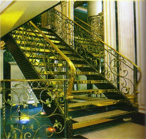 玻璃:本身所具有的通透感在用做樓梯裝飾時,效果更是不凡?,F(xiàn)在市場上有噴花玻璃和鑲嵌玻璃,可以把它用在樓梯扶欄處,更絕妙的用法是將樓梯臺階做成中空的,內(nèi)嵌燈管,以特種玻璃做踏腳板,做成可以發(fā)光的樓梯。