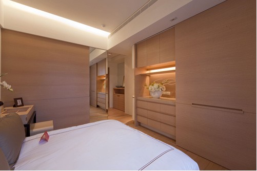 這間臥室的衣柜采用的是橡木飾面板,臥室的墻面采用的是與橡木板相似的防火板。由于記間大面積都是橡木色,由于臥室的空間不是很大,做了衣柜及柜子,床背景就沒有做了。臥室地面采用的是木地板。讓人一進(jìn)臥室就感覺很溫馨的家,臥室是自己每天在家呆得到最長的地方,每天睡覺的地方,所以是最私密的。強(qiáng)調(diào)居家的實(shí)用性和舒適性,加上燈光的配合給整個(gè)空間營造出浪漫的氣氛。