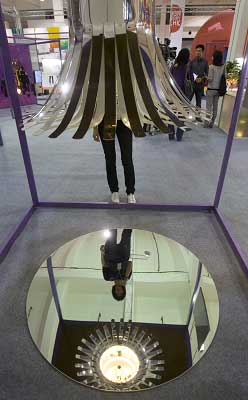 “視覺電壓”是世界環(huán)保設(shè)計趨勢下的產(chǎn)物,誕生于北歐創(chuàng)意之都瑞典,通過設(shè)計使產(chǎn)品的形態(tài)根據(jù)使用過程而改變,在滿足產(chǎn)品的環(huán)保、使用便捷等功能之余,為使用者帶來獨(dú)特的視覺感官體驗(yàn)。記者在展覽現(xiàn)場看到,曾獲得美國《時代雜志》“最具創(chuàng)意獎”的節(jié)能燈具“花瓣燈”也來到了現(xiàn)場。這盞花瓣燈時而展開,將片片花瓣綻放,宛如一張“笑臉”,時而閉合,變成一個直筒造型。瑞典設(shè)計師介紹,這盞燈被安裝在室內(nèi),可以提醒人們注意節(jié)能,“首先設(shè)定一個能耗標(biāo)準(zhǔn),當(dāng)室內(nèi)各種電器的能耗超過這個標(biāo)準(zhǔn)時,花瓣燈就會閉合;反之,它會給你一個燦爛的微笑。日常生活中,誰不愿意天天面對著盛開的花朵呢?”