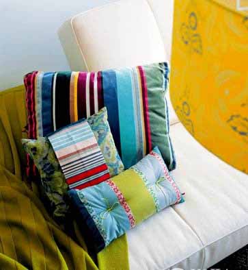 將搭配在沙發(fā)上的靠墊、織品的顏色改變一下,利用草綠、橙黃、湖藍(lán)等淺色調(diào),讓居室富有春天的清新氣息。