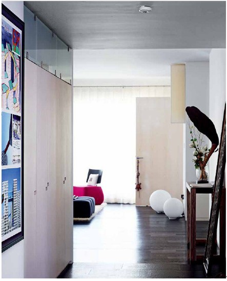 無論柜子里面的衣物收納得多么隨意,只要有一個大大的柜門把它們遮擋起來,便會非常整齊。白色也會增加光感,讓空間變得明亮。