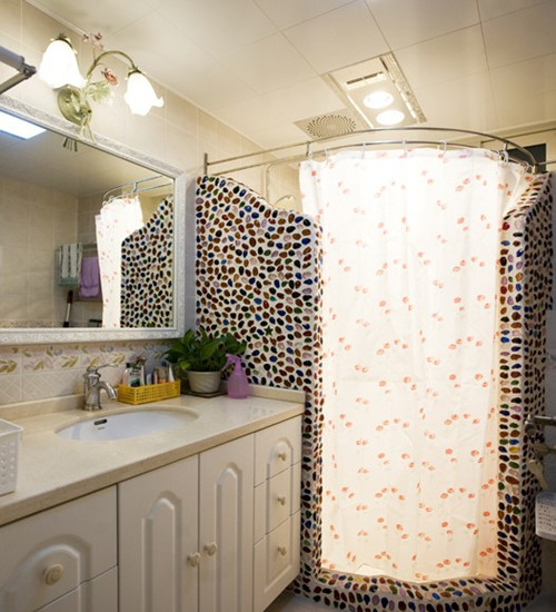 衛(wèi)生間里其它地方都是常見(jiàn)的,唯有這個(gè)淋浴房,半開(kāi)放式的馬賽克拼接,既有童趣亦會(huì)增加視覺(jué)美感。