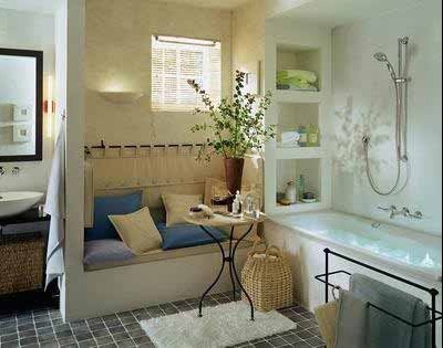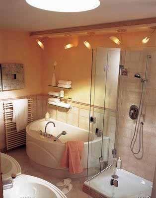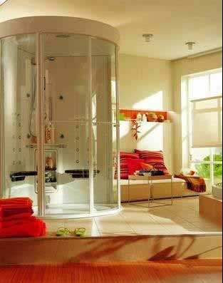 衛(wèi)生間慣用的材料冰冷而生硬,色調(diào)也平淡乏味,讓人覺得疏遠和冷漠。于是,使用了新型的裝飾材料,比如頂面采用防水乳膠漆,用桑拿板裝飾墻面。靈活運用好這些裝飾元素,的確創(chuàng)造出一個別具一格的衛(wèi)生間。