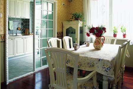 家居心得:令人心曠神怡的淺色調鄉(xiāng)村田園風格能給家?guī)頍ㄈ灰恍碌摹按骸钡母杏X。明亮的空間是讓空氣清新的重要因素,高明度的原木黃色或略含灰度的藍綠色在色彩感覺上比較對味。