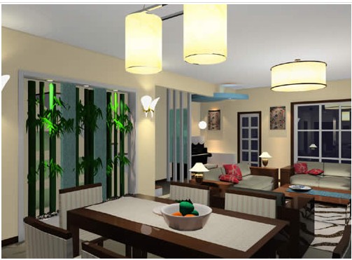 這頂上造型還挺有的個性的哦,設(shè)計師用中式六邊木梁來掩飾原來過梁的突出部分,再利用小圓柱體造型的燈飾,這樣的結(jié)合很完美。原來的缺陷在這樣的設(shè)計下別有一番風(fēng)味!